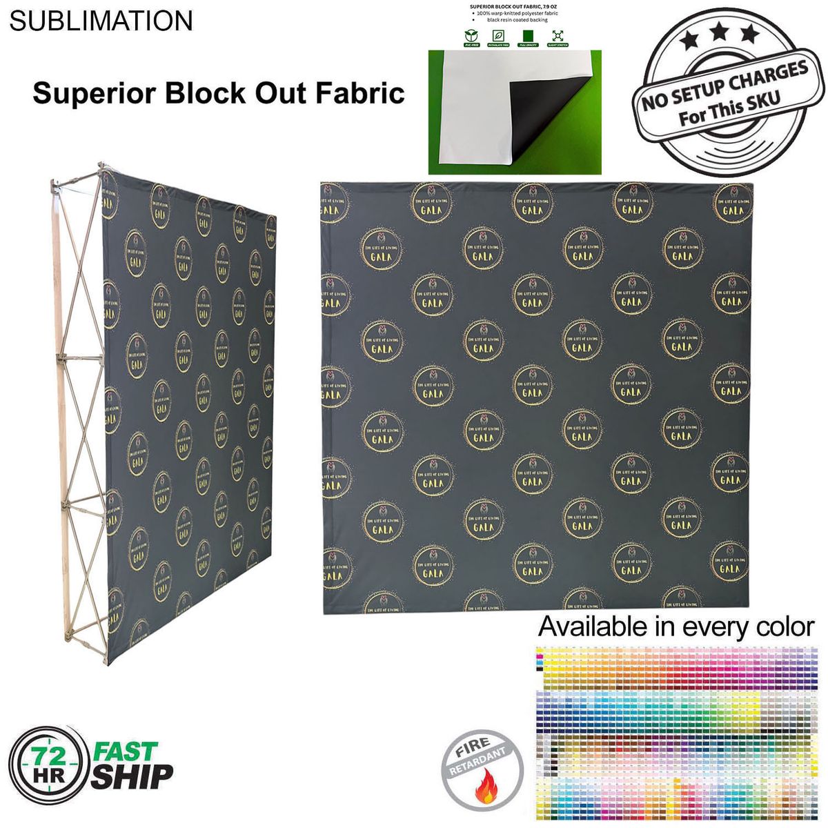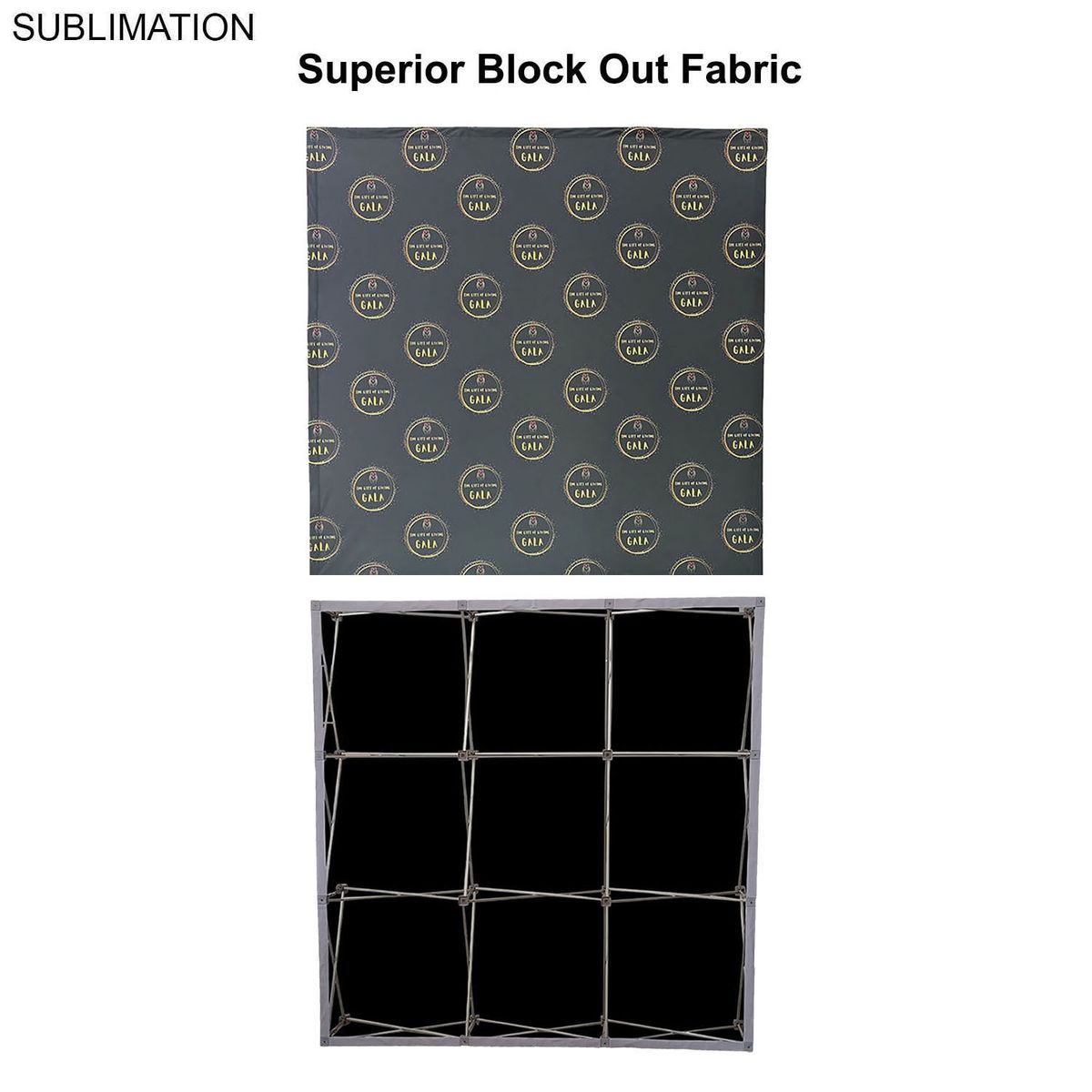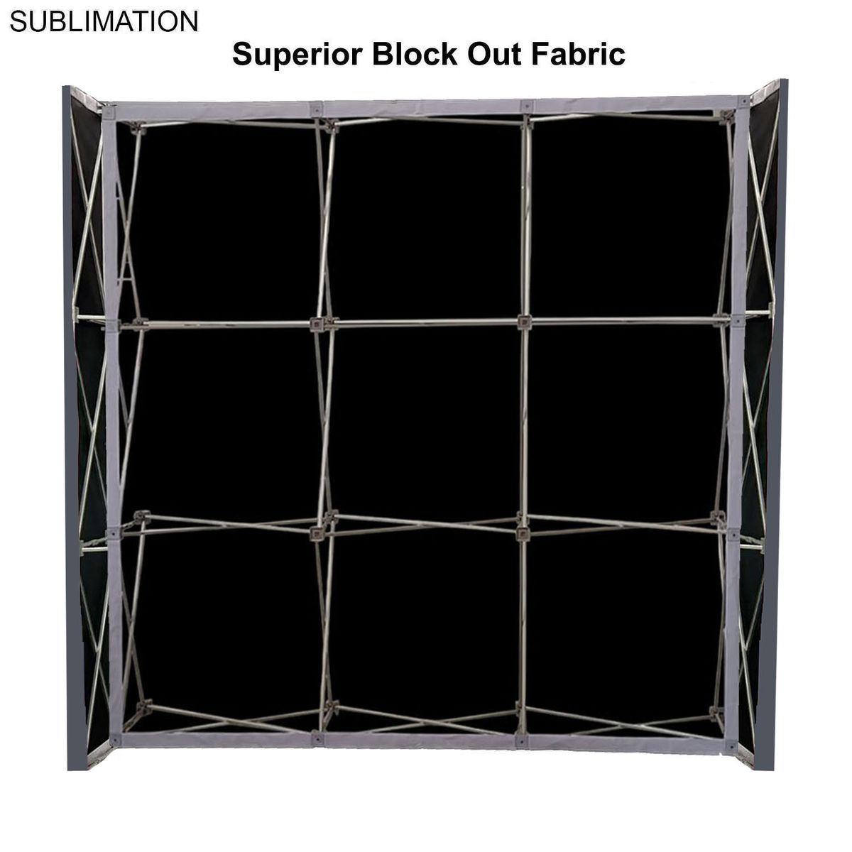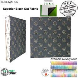 7.5' Straight Wall Full Height Tension Fabric Pop-up Display Kit produced with Superior Block Out Fabric is a versatile solution for your display needs. Block-out fabric wall with black backing designed for bright, sunny rooms. Completely prevents light from passing through the material. This unit transforms from a compact unit to an impressive backdrop wall, hop-up banner in minutes. The graphics are pre-attached with hook and loop and expand the durable, lightweight aluminum frame for a display, hop-up banner that sets up in seconds without the use of tools. This wall is highly portable and perfectly compliments booths from 10x10ft inline to large 20ft, 30ft and larger displays or great in showrooms. A carry bag is included for ease of use in shipping and transportation. Usage: Tradeshows, Events, Conferences, Business, Reception Area, Retail, Airport, Display kit, Media Wall, Zoom Meetings, Photo Backdrop, Corporate events, Wedding and Party photo backdrop, Press Conferences, Interviews, Retail, Offices. Price includes full color graphics edge to edge. Max Imprint: 90"W x 90"H