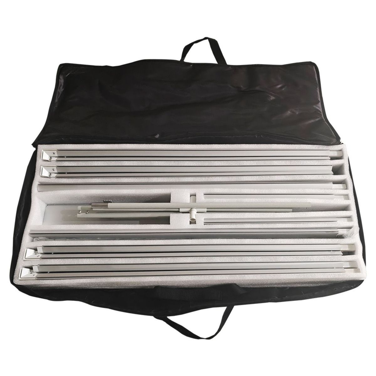 - Easy to replace graphics—perfect for events, retail, and showrooms. Kit includes Includes soft carry case with wheels made from 600 Denier polyester.