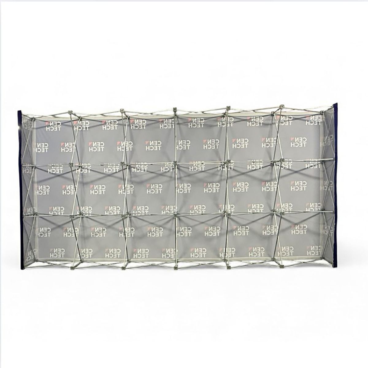- 15' (approx 180" x 90") Straight Wall Full Height Tension Fabric Pop-up Display Kit with Wrap End Caps and Full color graphics edge to edge single sided. The fabric graphics wrap around the sides of the wall for sleek, complete look. NO SETUP CHARGE.