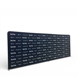DescriptionUse this LARGER 20' wide Tension Fabric straight wall in a setting with ample display space. This double-sided display is lightweight and stylish. Double-sided graphic cover is viewable from both the front and back of the display for maximum visibility. You can do different graphics on both sides. Graphics can be whatever you want, step and repeat, Photo images, full colors logo (s). Setup and break down takes seconds and is convenient. Usage: Display kit, Media Wall, Tradeshows Back drop, Zoom Meetings, Photo Backdrop, Corporate events, Wedding and Party photo backdrop, Press Conferences, Interviews, Retail, Events, Offices. Price includes full color graphics. Max Imprint: 240" x 96"L