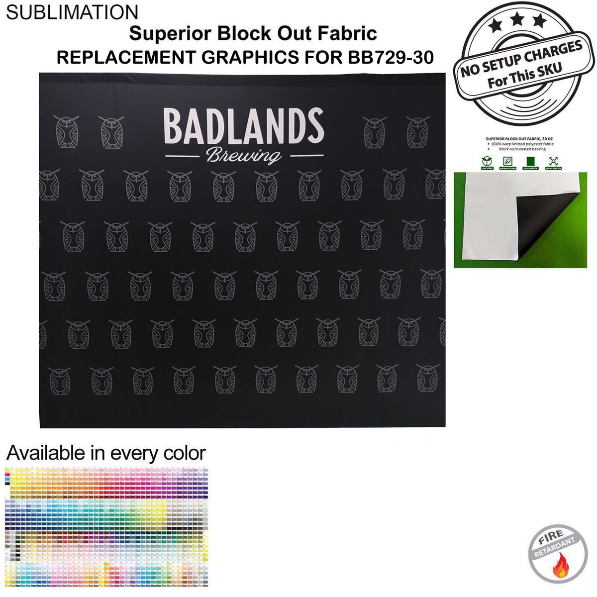 - Artwork is sublimated on Superior Block Out polyester fabric which provides opacity and doesn't allow light to pass through making your graphics pop. Its a high-quality material which is durable. Available in every pantone PMS color and with Unlimited Graphics possibilities to create your unique display, Media wall, Backdrop. Dye-sublimation printing delivers vivid graphics. Step and Repeat Graphics are a popular choice for this item.