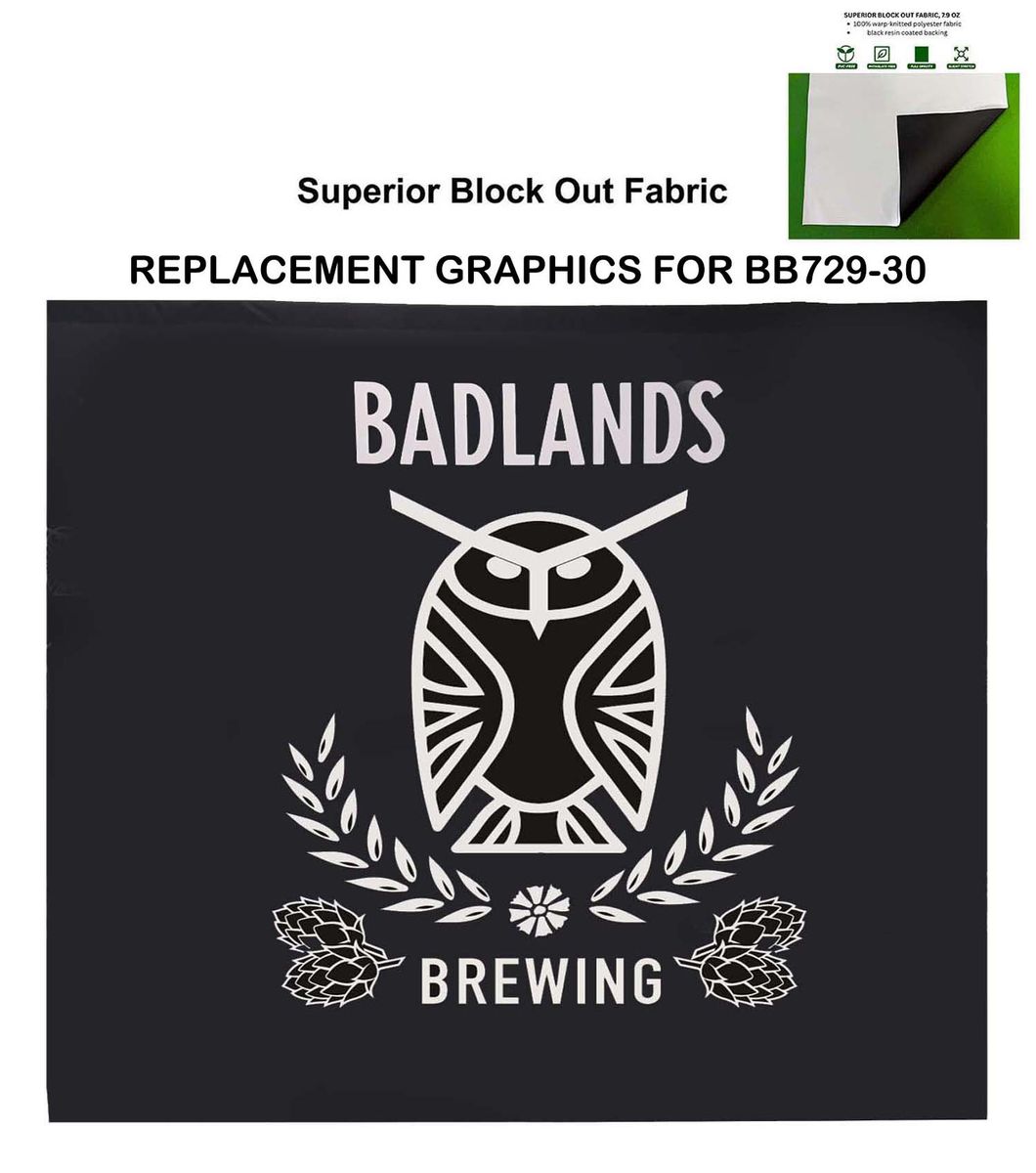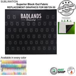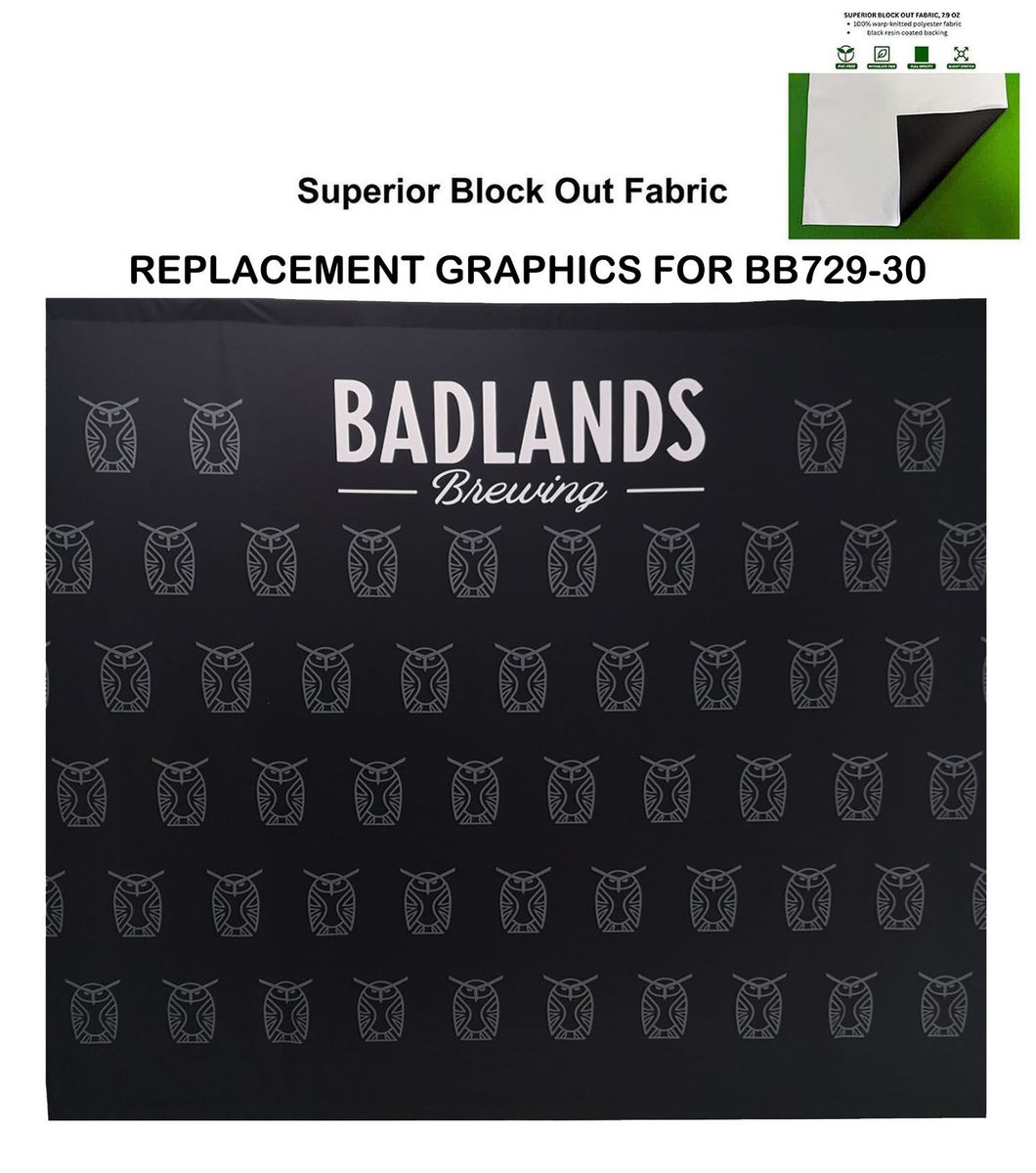 - Replacement graphics will work for our sku # BB729-30 Display, Media Wall, Superior Block out fabric Backdrop. Artwork is sublimated on Superior Block Out polyester fabric which provides opacity and doesn't allow light to pass through making your graphics pop. Its a high-quality material which is durable. Available in every pantone PMS color and with Unlimited Graphics possibilities to create your unique display, Media wall, Backdrop. Dye-sublimation printing delivers vivid graphics. Step and Repeat Graphics are a popular choice for this item.