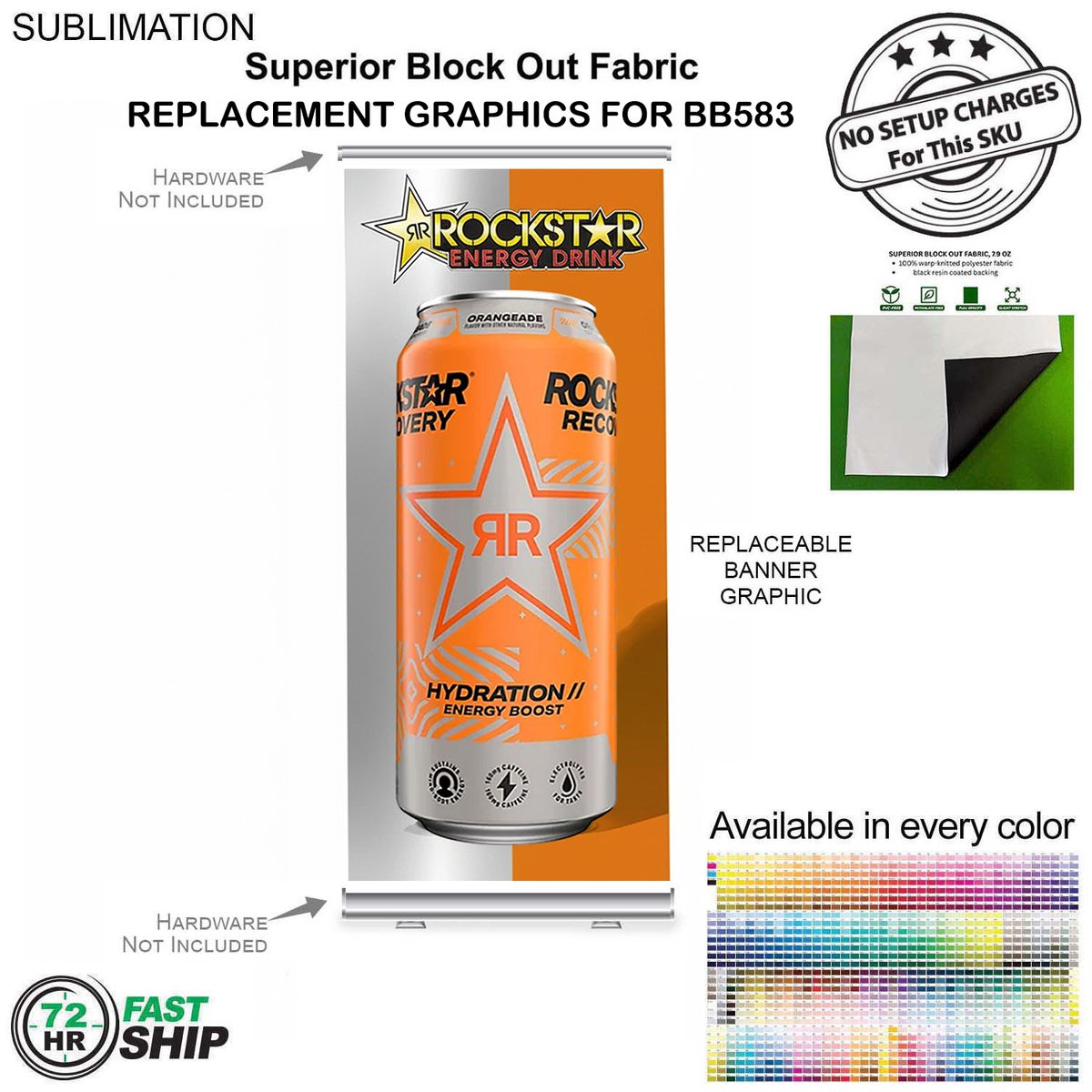 - Banner hardware and padded carry bag are not included. hardware sku # is BL583 or full kit is sku # BB583