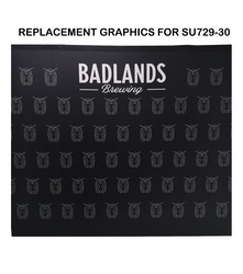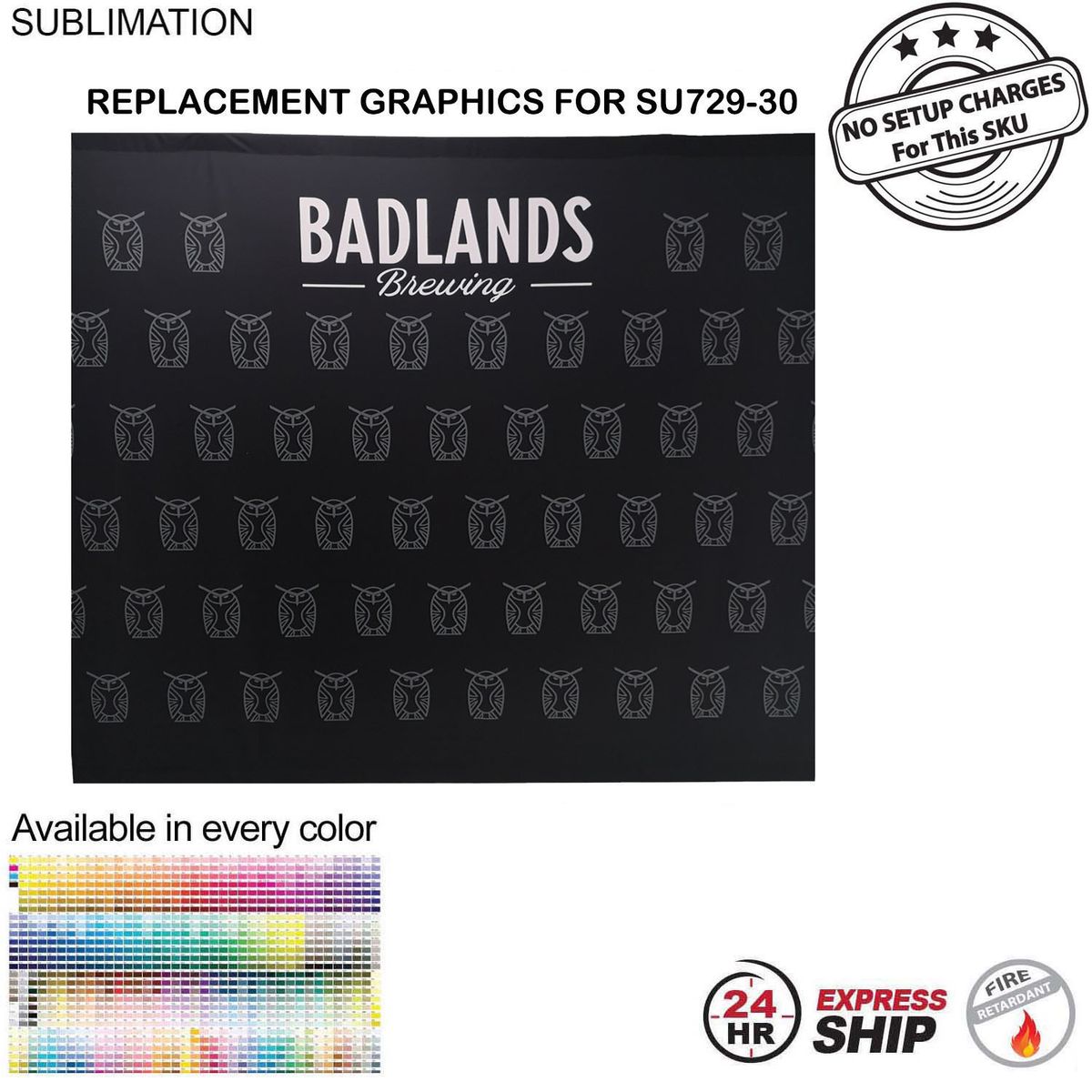 Out with the old, in with the new with replacement graphics. Replacement Graphics Single sided with pole pocket top and bottom. Replacing Graphics takes seconds and is convenient. Hardware (Adjustable Display Stand) and carry bag not included. Usage: Media Wall, Tradeshows Back drop, Zoom Meetings, Photo Backdrop, Corporate events, Wedding and Party photo backdrop, Press Conferences, Interviews, Retail, Events, Offices. Price includes full color graphics. Max Imprint: 120" x 96"LNormal Production Time