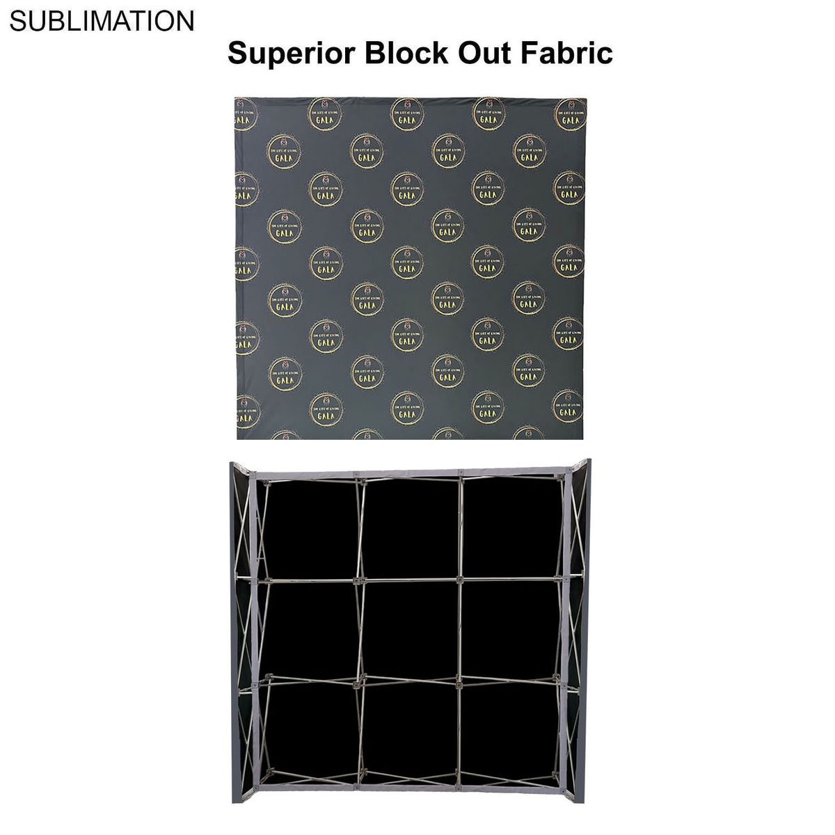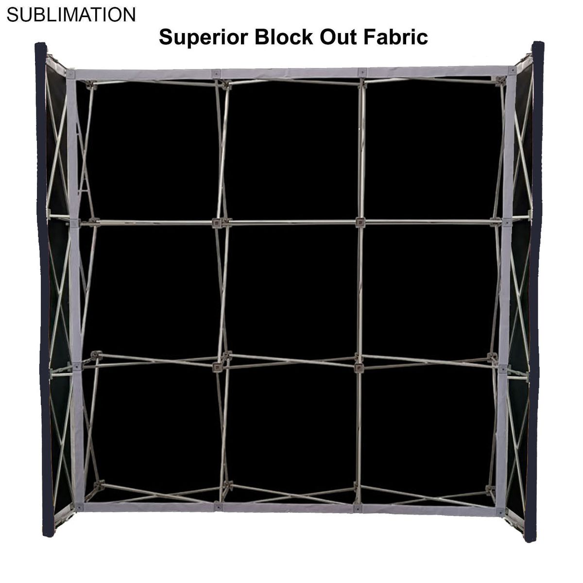 7.5' Straight Wall Full Height Tension Fabric Pop-up Display Kit with Wrap End Caps, and Superior Block Out Fabric is a versatile solution for your display needs. Block-out fabric wall with black backing designed for bright, sunny rooms. Completely prevents light from passing through the material. The fabric graphics wrap around the sides of the wall for sleek, complete look. This unit transforms from a compact unit to an impressive backdrop wall, hop-up banner in minutes. The graphics are pre-attached with hook and loop and expand the durable, lightweight aluminum frame for a display, hop-up banner that sets up in seconds without the use of tools. This wall is highly portable and perfectly compliments booths from 10x10ft inline to large 20ft, 30ft and larger displays or great in showrooms. A carry bag is included for ease of use in shipping and transportation. Usage: Tradeshows, Events, Conferences, Business, Reception Area, Retail, Airport, Display kit, Media Wall, Zoom Meetings, Photo Backdrop, Corporate events, Wedding and Party photo backdrop, Press Conferences, Interviews, Retail, Offices. Price includes full color graphics edge to edge. Max Imprint: 90"W x 90"H