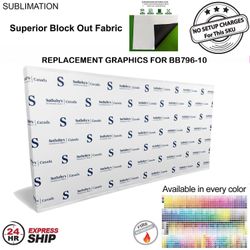 Out with the old, in with the new with replacement graphics produced from Superior Block out fabric. Completely prevents light from passing through the material. Replacing Graphics takes seconds to install and is convenient. Replacement Graphics for 15' wide Straight Wall Full Height Tension Fabric Pop-up Display, Hop-up banner with Wrap End Caps. Graphics have velcro in the back for easy installation to the hardware. Graphics can be whatever you want, step and repeat, Photo images, full colors logo (s). Hardware and carry bag not included.. Usage: Tradeshows, Events, Conferences, Business, Reception Area, Retail, Airport, Display kit, Media Wall, Zoom Meetings, Photo Backdrop, Corporate events, Wedding and Party photo backdrop, Press Conferences, Interviews, Retail, Offices. Price includes full color graphics edge to edge. Max Imprint: 180"W x 90"H