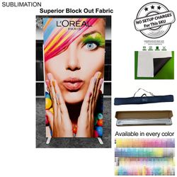Elevate your branding with our SEG Fabric Banner Stand, a sleek 40" x 80" display that delivers stunning, frameless visuals. Superior Block-out fabric wall with black backing designed for bright, sunny rooms. Completely prevents light from passing through the material. Sublimation Print in full color on Superior Block out polyester fabric, this system uses Silicone Edge Graphics (SEG) to create a smooth, edge-to-edge finish with no wrinkles, curls, or visible hardware. The lightweight aluminum frame assembles in minutes without tools, making it perfect for trade shows, retail environments, conferences, and promotional events. Banner Includes single sided graphics and it comes with a carry case (bag). Usage: Tradeshows, Events, Conferences, Business, Reception Area, Retail, Airport, Display kit, Media Wall, Zoom Meetings, Photo Backdrop, Corporate events, Wedding and Party photo backdrop, Press Conferences, Interviews, Retail, Offices. Price includes full color graphics edge to edge. Max Imprint: 40"W x 80"H