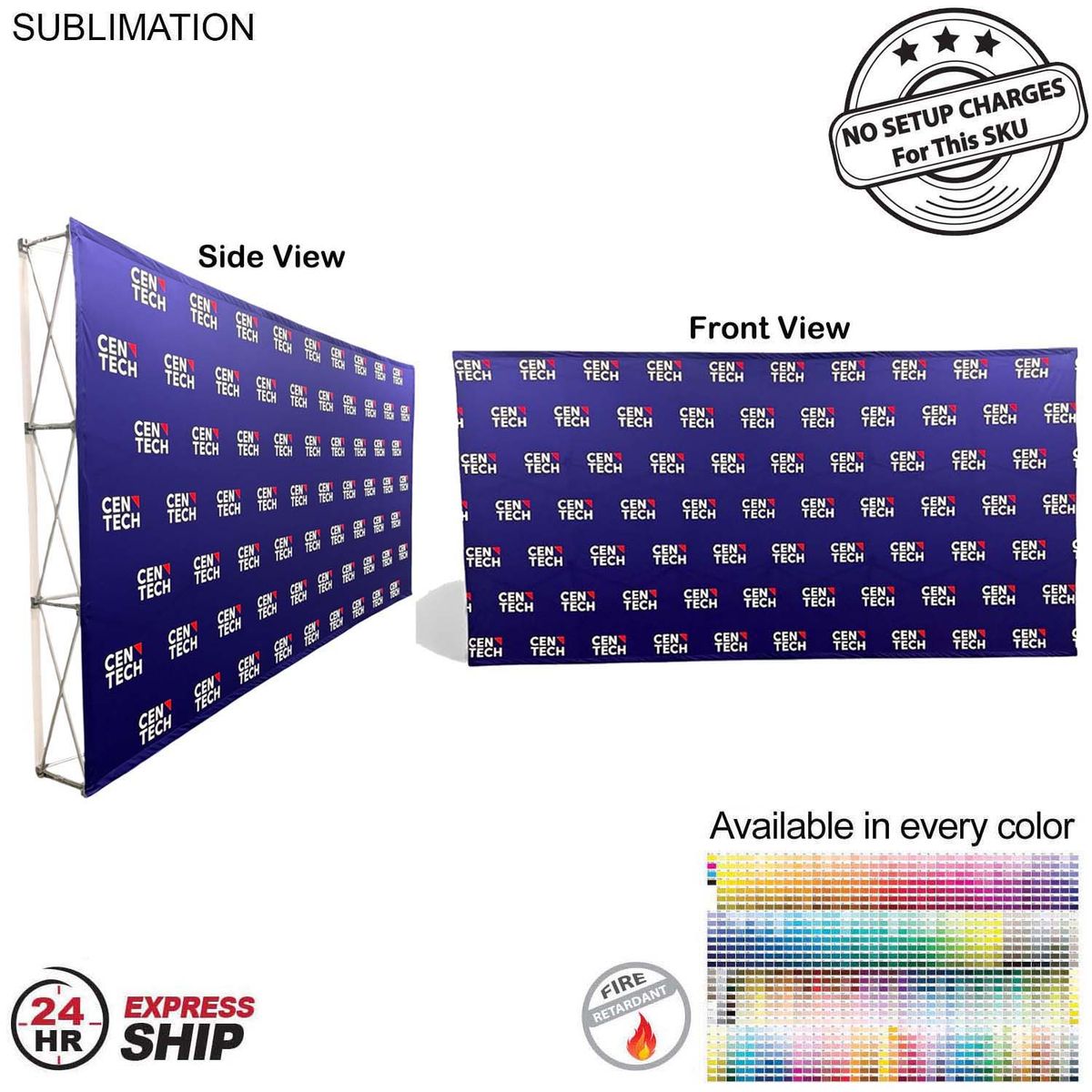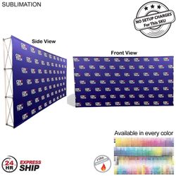 - The look of this LARGER 15ft wide Straight wall is very clean, no ruffles in the fabric. The sublimated tension fabric wall stays flushed on the hardware for the perfect photo background and the 12" depth of the wall makes it very sturdy. It transforms from a compact unit to an impressive backdrop wall in minutes. Dye sublimated on premium white Tension fabric. You can get the background in every pantone PMS color with full color graphics, Step and Repeat design, photos, graduation messge, etc. Graphic panel covers the front of the pop-up Wall.